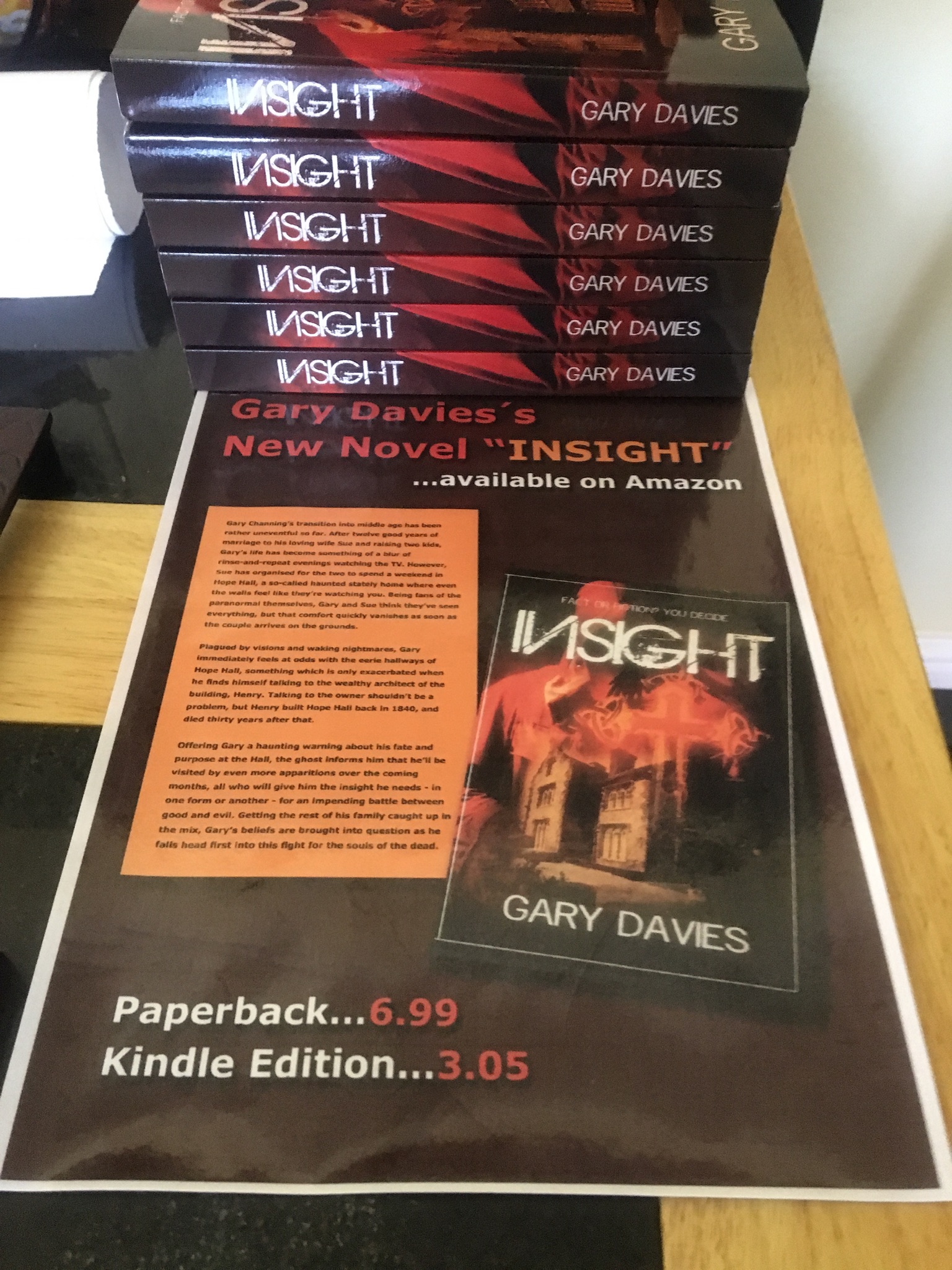 Hello, my name is Gary Davies and welcome to my blog. I am the author of the novel, “Insight” a story of the paranormal which I’m sure most of you have had some experience of. The main character, “Gary Channing” is a kind of alter ego, a family man with an interest in the paranormal but a little suspicious of the main stream things out there like “Ghost hunting” evenings/weekends and so called “Mediums” that claim they are in touch with the dead but usually can’t give you the spirits name or very little else, strange that. So like many of you I watched shows like “Most Haunted” & “Crossing over with John Edward”. Now at the time I’d had experiences with so called mediums, mostly very disappointing i have to say and now some of these shows come with the warning, “for entertainment only” Really! But I have to say that my favourite TV medium of all time has to be Derek Acorah and of course lets not forget his spirit guide “Sam”. What puzzles me is why are most spirit guides native american Indians? I plan to include some short stories both real and from my imagination, some short videos. I’d love to have some of your experiences and photo’s/videos to be able to include in my blog. So the adventure begins, please join me.